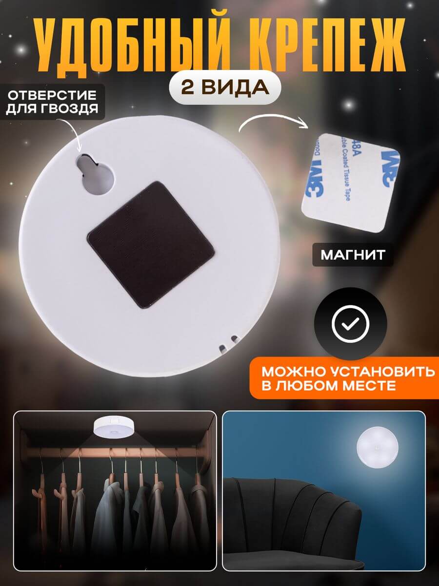 Подвесной фонарик можно установить даже в самых труднодоступных местах - внутри гардероба и шкафа, у прикроватной тумбочки или полки, а также на стене за стеллажами. В фонаре используется диодная led лампочка - она отличается особой экономичностью и прослужит вам долгое время без замены.